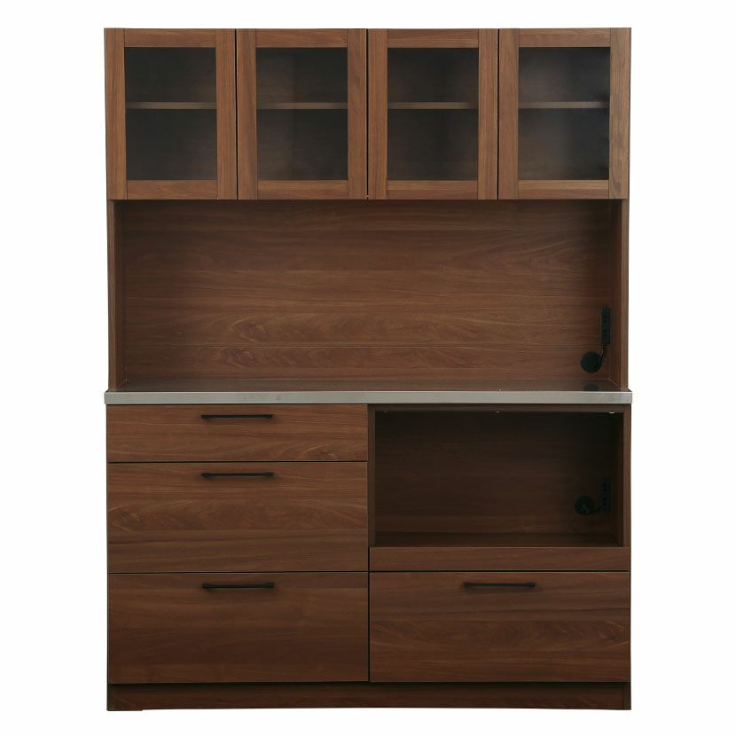 幅140.4cm 食器棚 日本製 木目調 ガラス扉 ステンレス天板 コンセント付き 引き出し付き マグネット キッチンボード レンジボード キッチン 収納 棚 おしゃれ 北欧