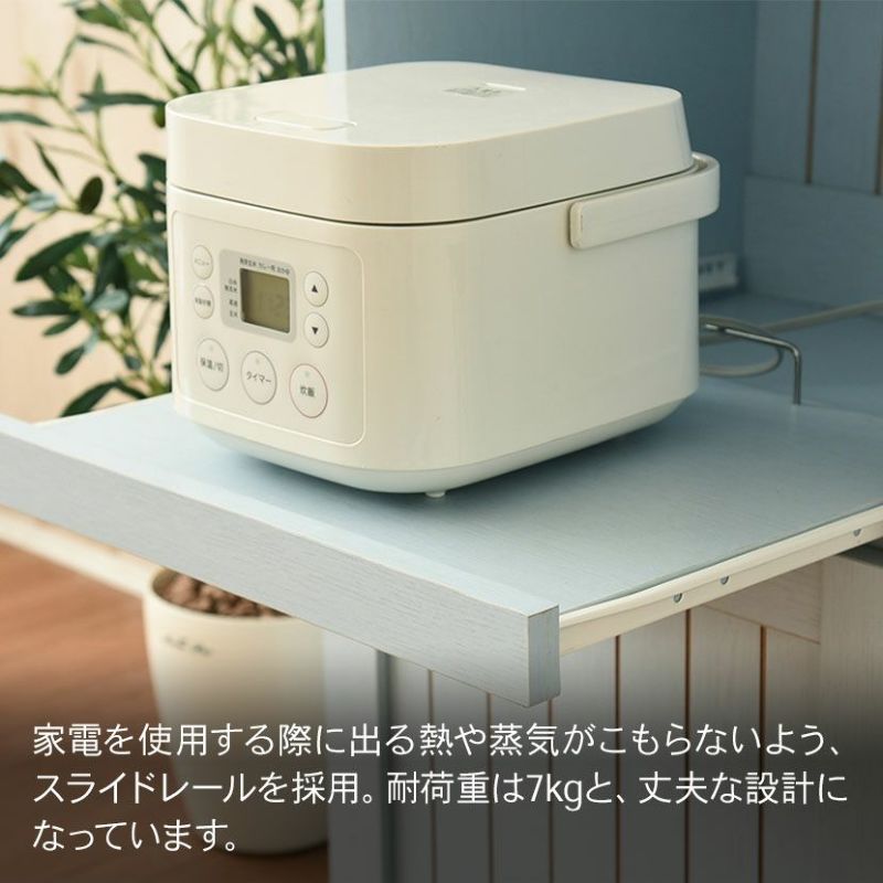 家電を使用する際に出る熱や蒸気がこもらないよう、スライドレールを採用。
