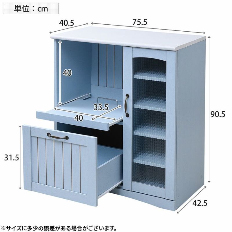 広い天板には電子レンジやトースターなどの家電を設置できます。