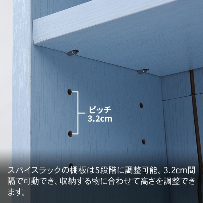 3.2cm間隔で可動でき、収納する物に合わせて高さを調整できます。