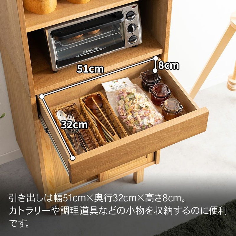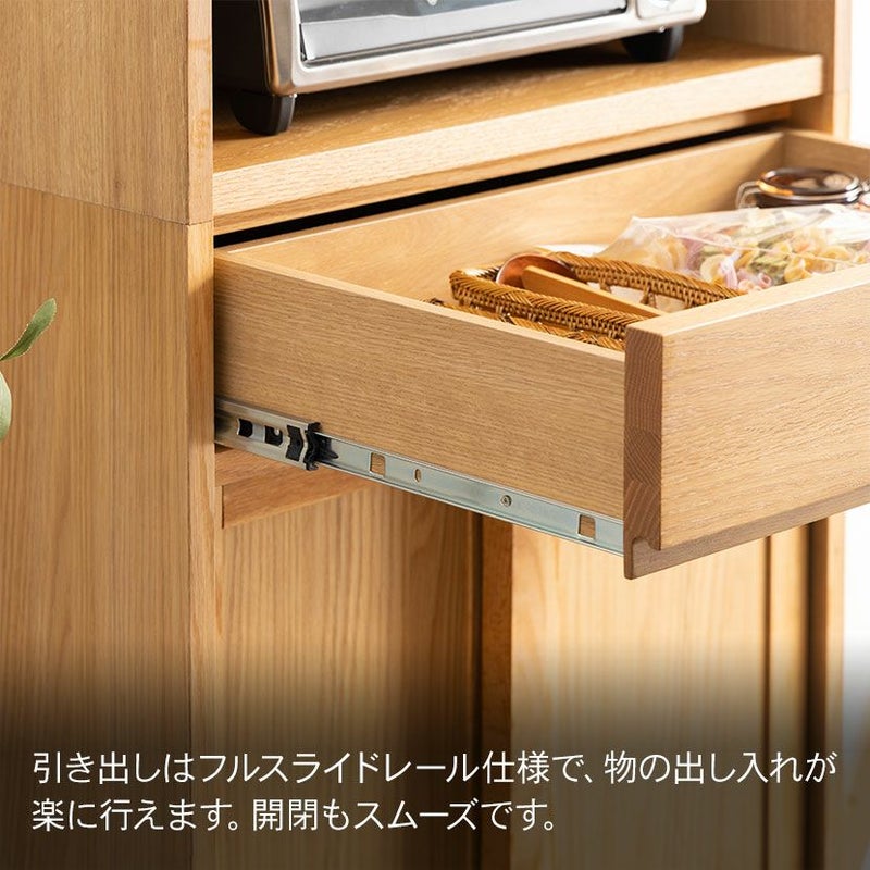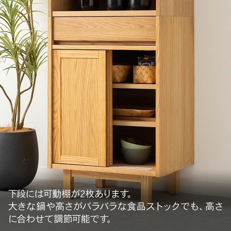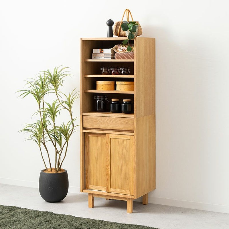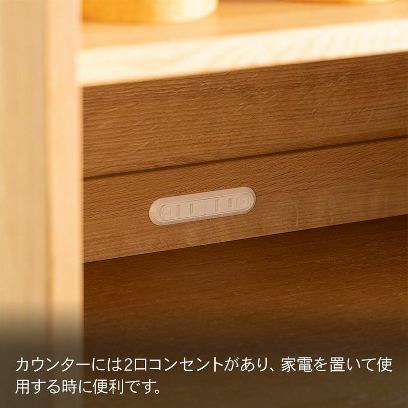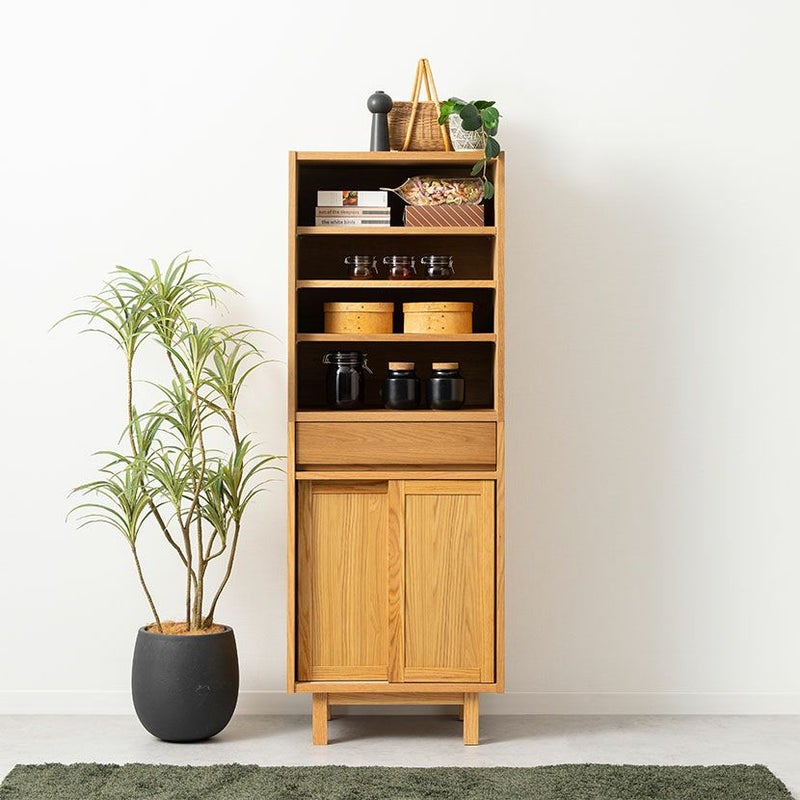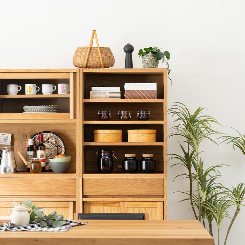 天然木の柔らかく温かな印象が、ナチュラルテイストのお部屋にピッタリなキッチンボード。