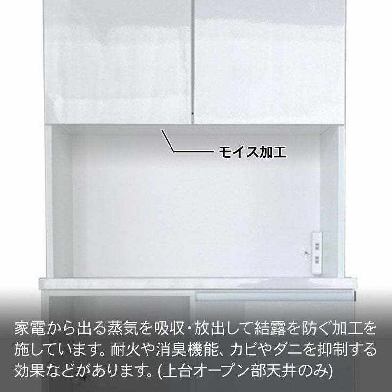 ●家電から出る蒸気を吸収・放出して結露を防ぐ加工を施しています。耐火や消臭機能、カビやダニを抑制する効果などがあります。(上台オープン部天井のみ)