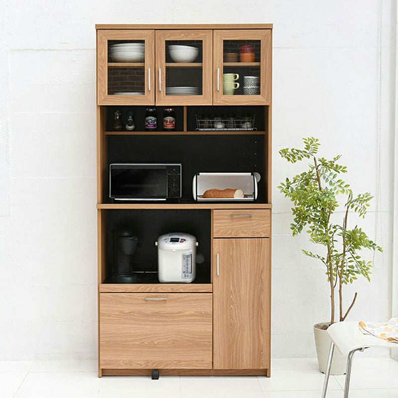 幅90cm 食器棚 Keittio ガラス扉 スライド棚 引出し付き キャスター付き 家電収納 収納 可動棚 2口コンセント キッチンカウンター レンジ台 台所 ヴィンテージ クーポン対象 クーポン対象 送料無料 送料無料 ¥ 27,490 税込