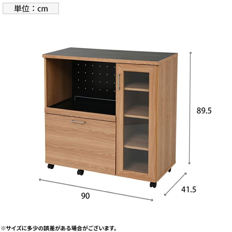 内寸 | (扉内)幅245×奥行360×高さ800mm (下部引き出し内)幅510×奥行330×高さ175mm (スライド部)幅540×奥行330×高さ390mm (スライド引き幅)325mm (ガラス扉内可動棚)幅270×奥行350×厚み15mm (下部扉内可動棚)幅565×奥行350×厚み15mm (32mmピッチ17穴) (天板)幅900×奥行415×厚み895mm |