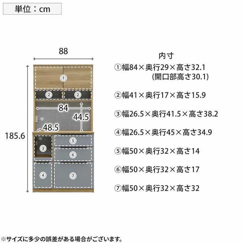 幅84×奥行29×高さ32.1mの上部開き扉は、様々な大きさの食器を収納するのにオススメです。