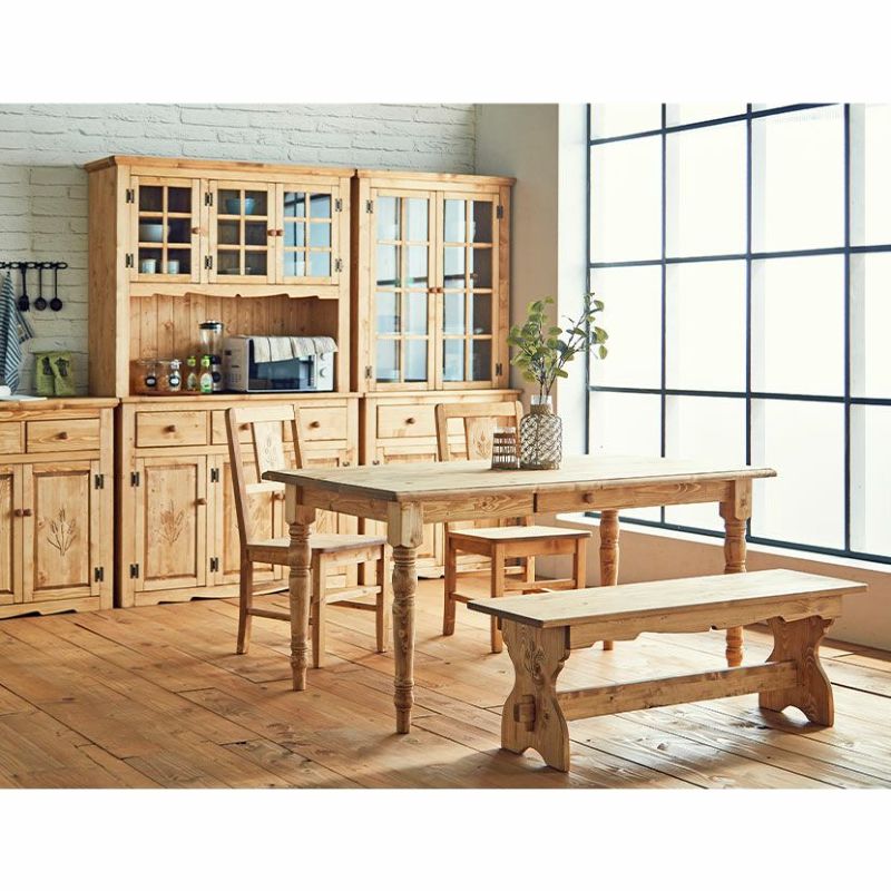 無垢の北欧パイン材に、穂の彫刻が特徴のファーマーシリーズ。懐かくそして温かみのあるカントリースタイルは癒しを与えてくれます。食品と同レベルの高い安全性を誇るドイツのOSMO社天然オイルを使用。審査基準の高いと言われているドイツで安心基準値をクリア。小さいお子様にも安心です。また使い込む程に、色が重なり風合いが出てくるのも楽しんで頂けたらと思います。