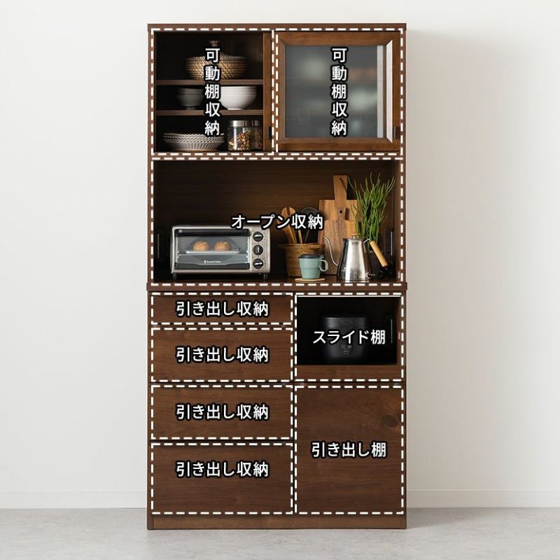 内部上部にはモイス加工を施しているので、蒸気の出る炊飯器や電気ケトル置き場として活用できます。