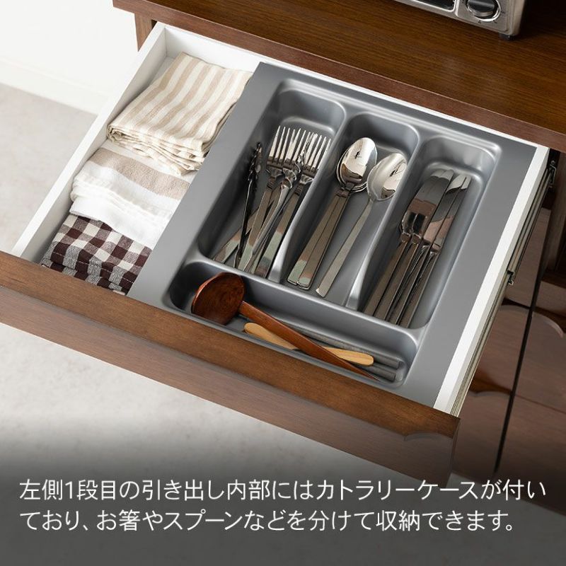 左側1段目の引き出し内部にはカトラリーケースが付いており、お箸やスプーンなどを分けて収納できます。