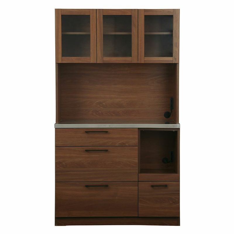 幅110.4cm 食器棚 日本製 木目調 ガラス扉 ステンレス天板 コンセント付き 引き出し付き マグネット キッチンボード レンジボード キッチン 収納 棚 おしゃれ 北欧