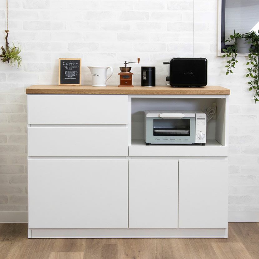 他の画像を見る 幅119cm キッチンカウンター 引き出し カップボード 天板 木目 収納 食器棚 レンジ台 キッチン収納 おしゃれ 可動棚 シンプル 北欧 モダン 白 グレー 黒 完成品 送料無料 送料無料 完成品 完成品 ¥ 48,900 税込 カートに入れる