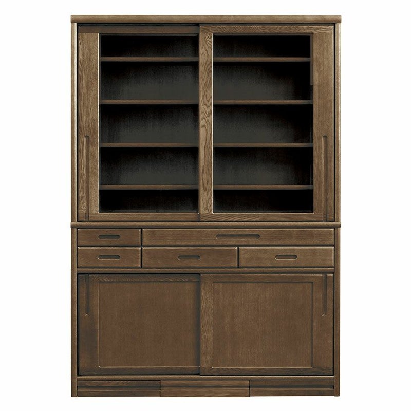 【設置無料】浜本工芸 幅125cm No.1500 食器棚 日本製 木製 天然木 ナラ材 ガラス扉 スライドテーブル付き 引き出し付き 収納 カップ ボード キッチンボード おしゃれ ナチュラル
