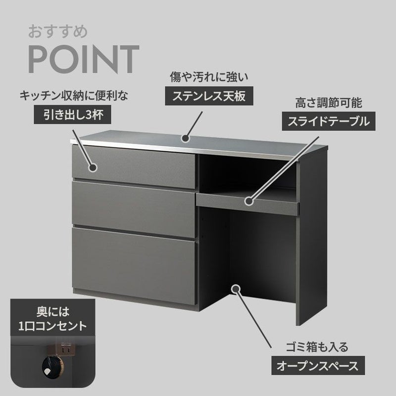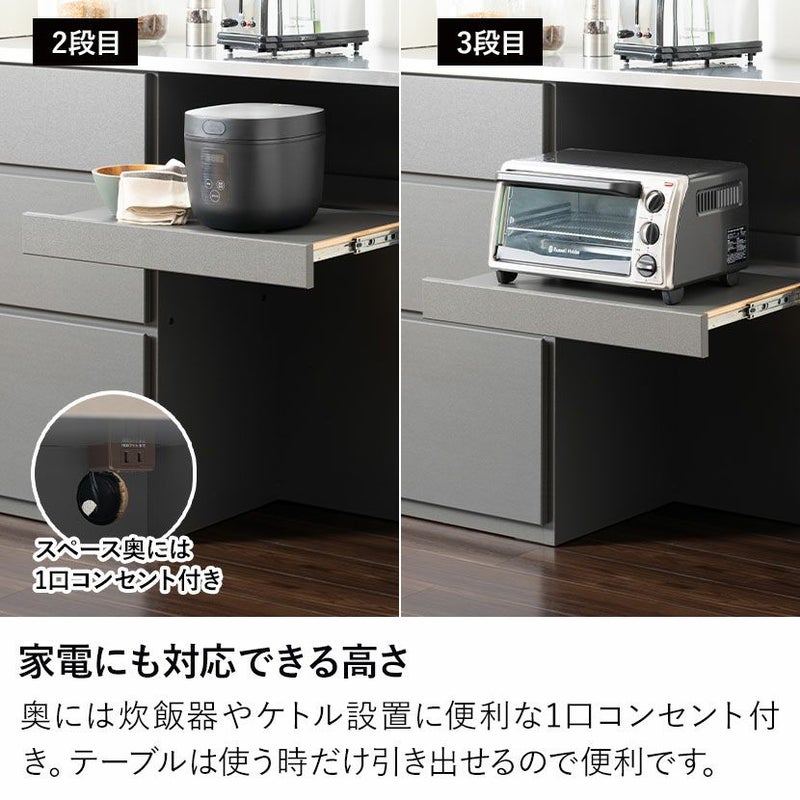 炊飯器や電気ケトルなどの設置に便利な高さになります。