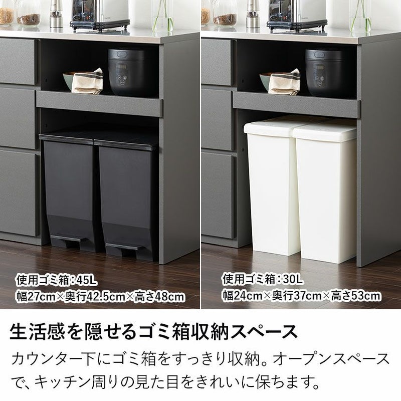 スライドテーブルの高さを調節し、ゴミ箱をすっきりと隠せるスペースとしても使用できます。