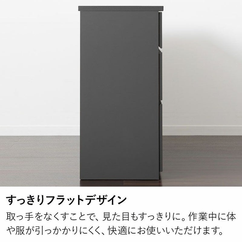 取っ手をなくしたフラットなデザインは、見た目がすっきりとしているだけでなく、作業中に体や衣類が引っかかりにくいという利点も。
