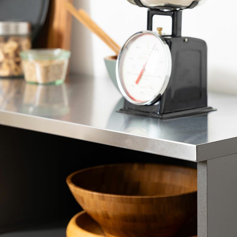 コンパクトながらも、調理の補助スペースや出来上がったお料理の盛り付け場所として活用できる天板です。