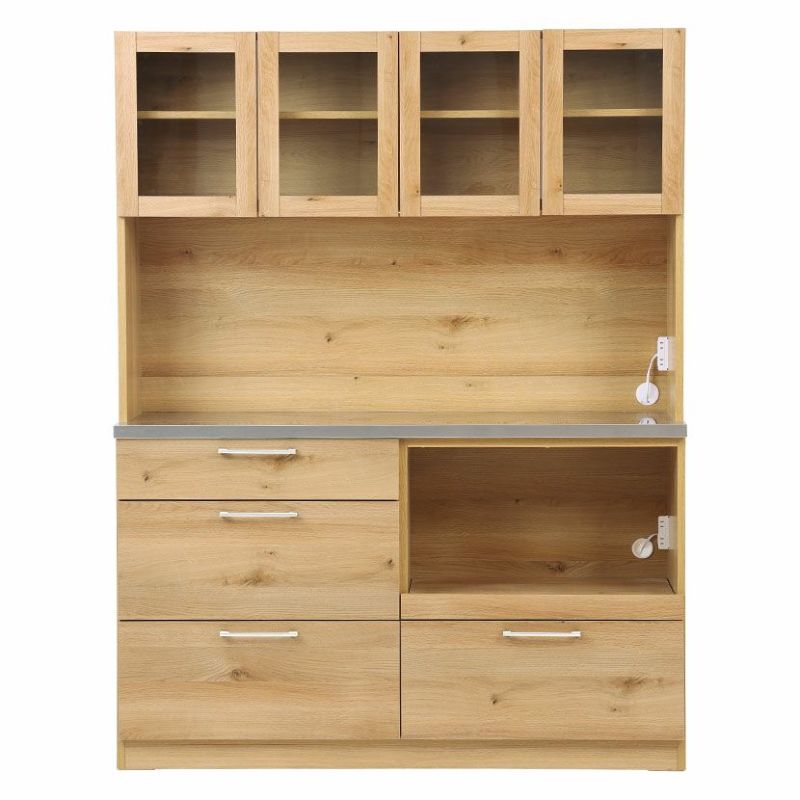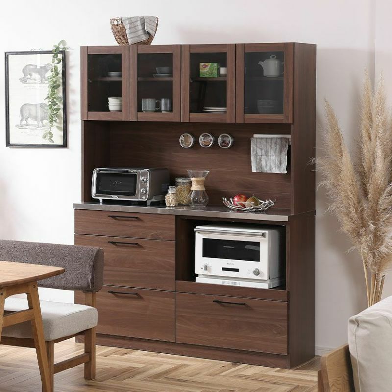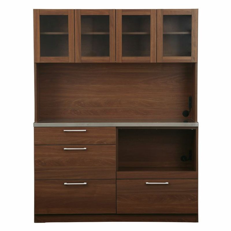 幅140.4cm 食器棚 日本製 木目調 ガラス扉 ステンレス天板 コンセント付き 引き出し付き マグネット キッチンボード レンジボード キッチン 収納 棚 おしゃれ 北欧