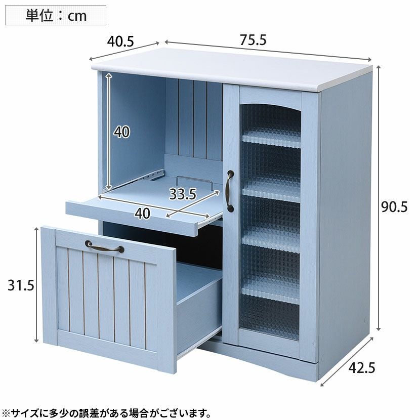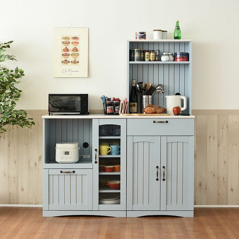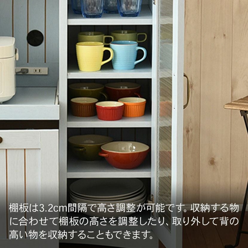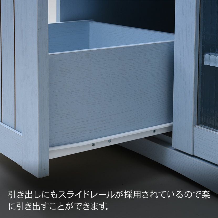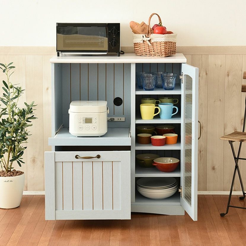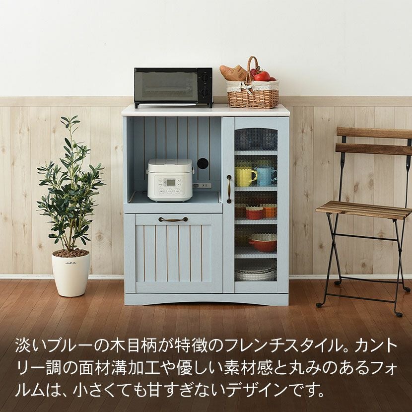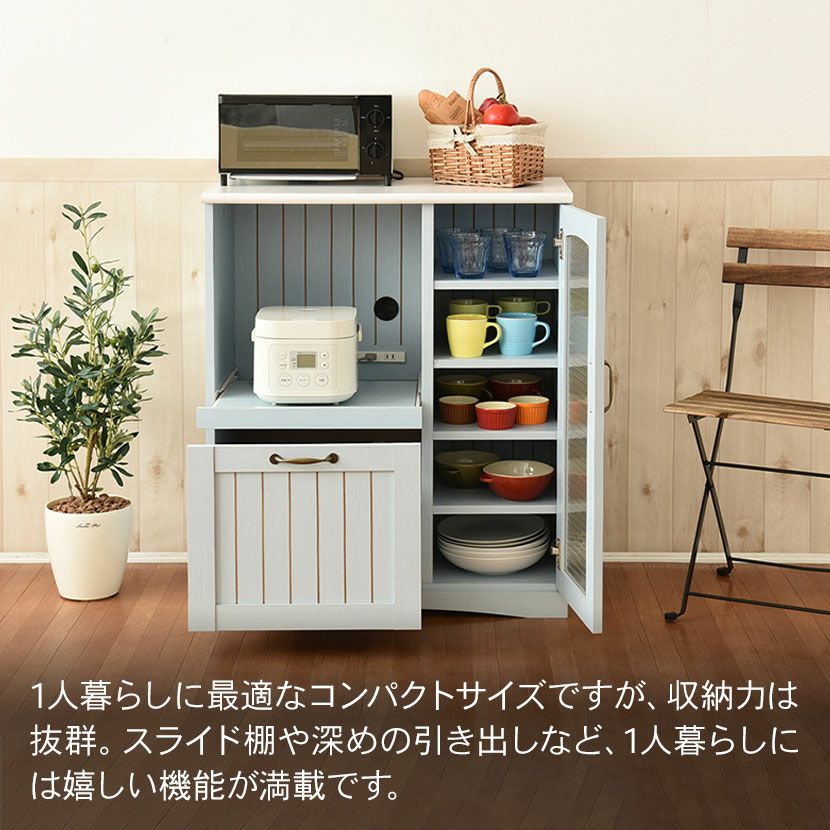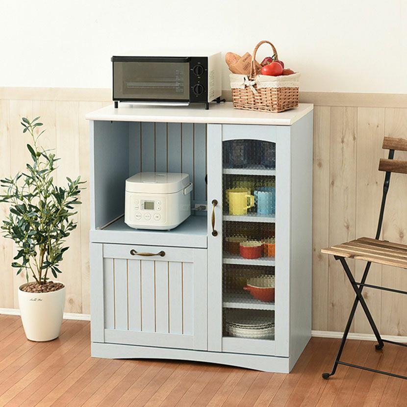 他の画像を見る 幅75.5cm 木製 キッチンカウンター ガラス扉 スライド棚付き コンセント付き コンパクト 食器棚 キッチン収納 レンジ台 フレンチカントリー かわいい ブルー クーポン対象 クーポン対象 送料無料 送料無料 ¥ 22,390 税込 カートに入れる
