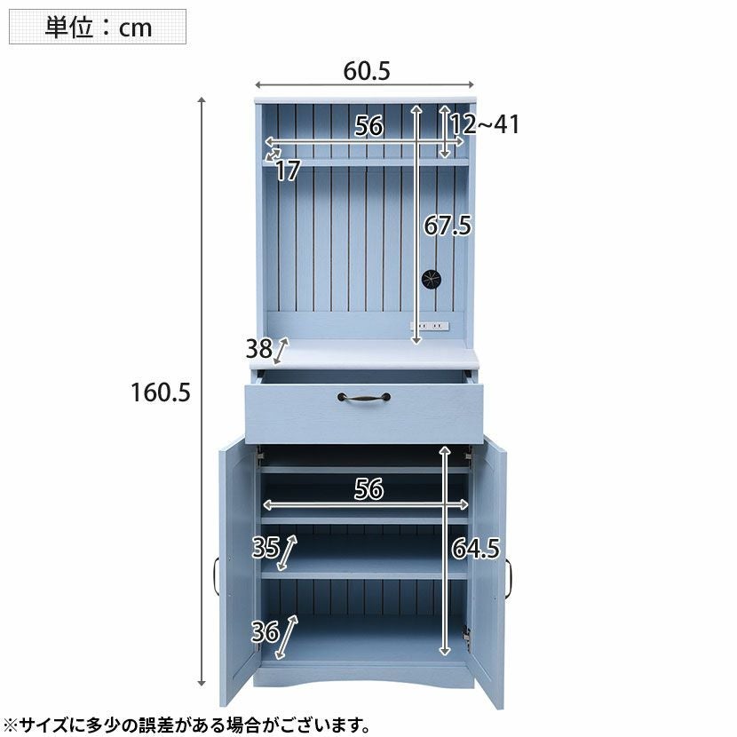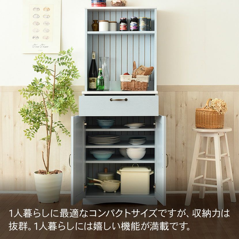 他の画像を見る 幅60.5cm 木製 カップボード 扉付き コンセント付き 引出し付き コンパクト 収納棚 キッチンボード キッチン収納 食器棚 フレンチカントリー おしゃれ ブルー クーポン対象 クーポン対象 送料無料 送料無料 ¥ 22,390 税込 カートに入れる