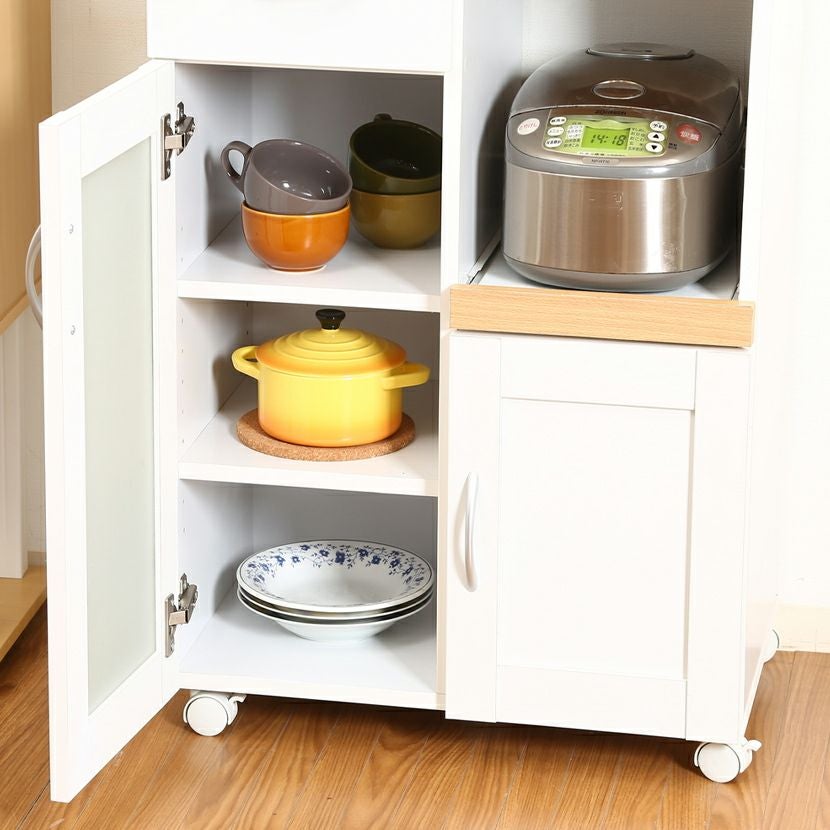 他の画像を見る 幅60cm 食器棚 サージュ ガラス扉 スライド棚 引出し付き 2口コンセント キャスター付き キッチンカウンター レンジ台 カップボード シンプル ナチュラル 白 クーポン対象 クーポン対象 送料無料 送料無料 ¥ 13,830 税込 カートに入れる