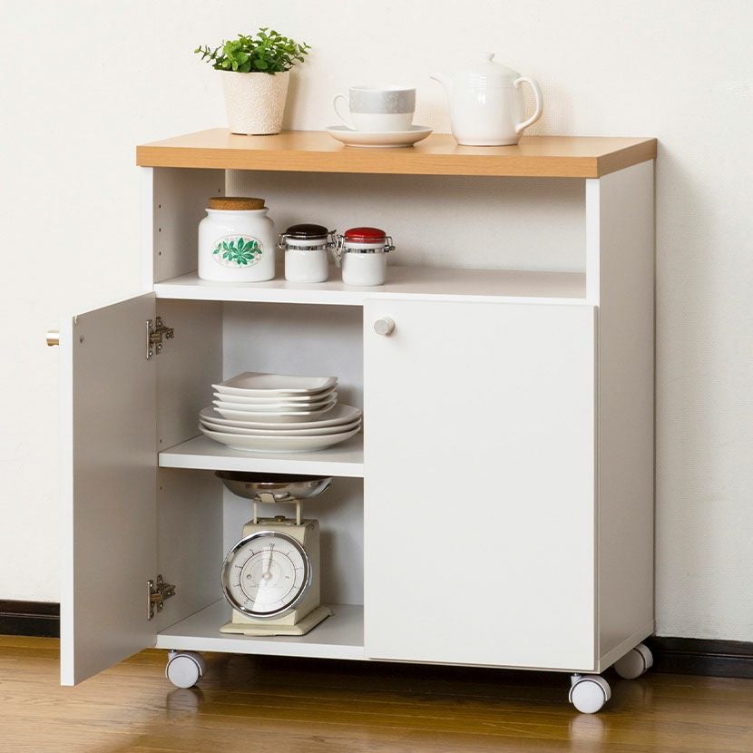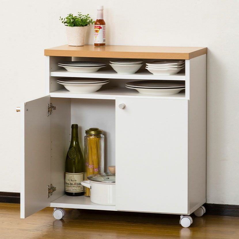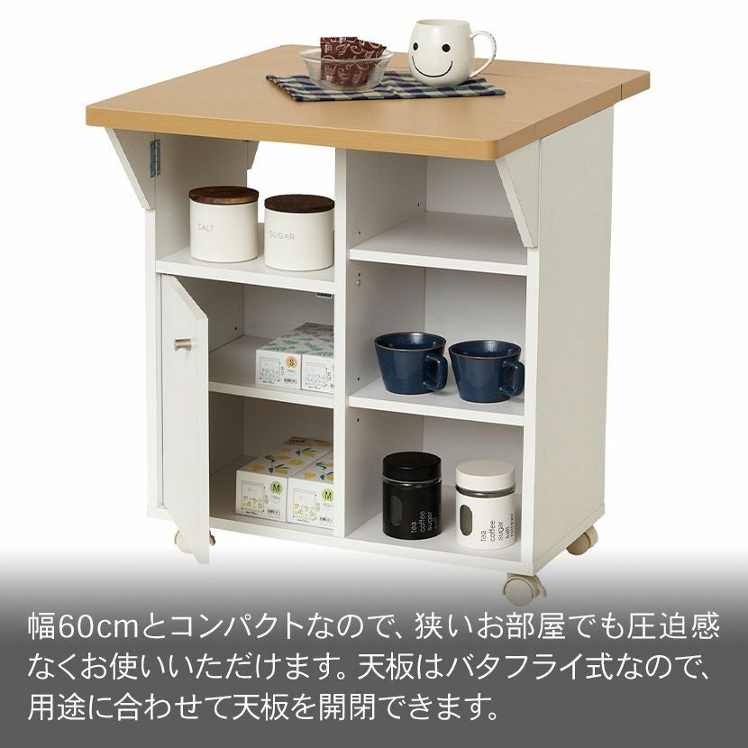 他の画像を見る 幅60cm バタ式キッチンワゴン バタフライ式天板 角丸 オープン収納 扉収納 キャスター付き 省スペース コンパクト 収納家具 収納 キッチン クーポン対象 クーポン対象 送料無料 送料無料 日本製 日本製 ¥ 12,900 税込 カートに入れる