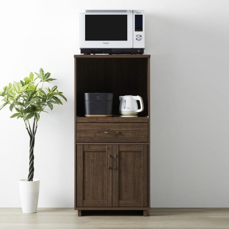 幅60cm キッチンボード コサロ 木目調 可動棚 配線穴付き スライド棚 引出し付き 開き扉 台所 収納 食器棚 カップボード レンジ台 おしゃれ シンプル ブラウン 送料無料 送料無料 ¥ 21,800 税込