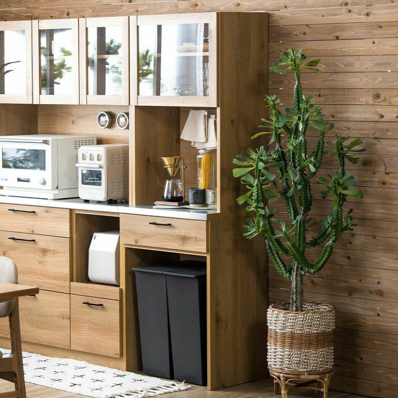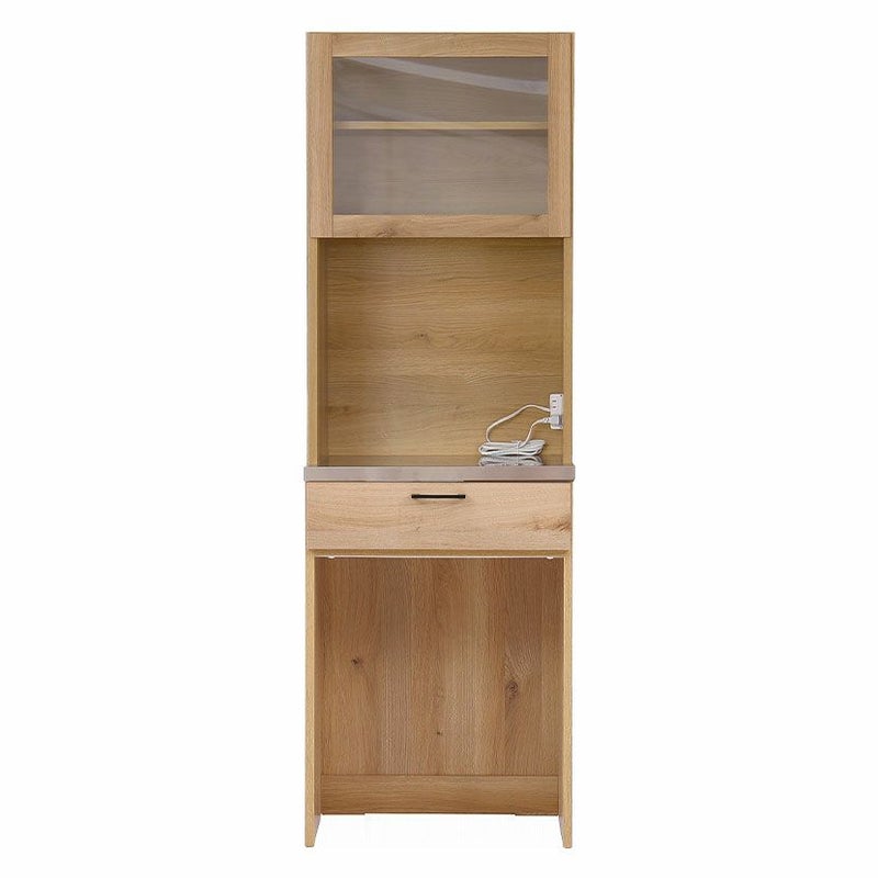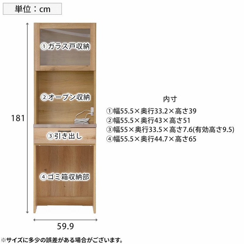 幅60cm 食器棚 日本製 木目調 ガラス扉 ステンレス天板 コンセント付き マグネット ゴミ箱収納 キッチンボード スリム レンジボード キッチン 収納 棚 おしゃれ 北欧