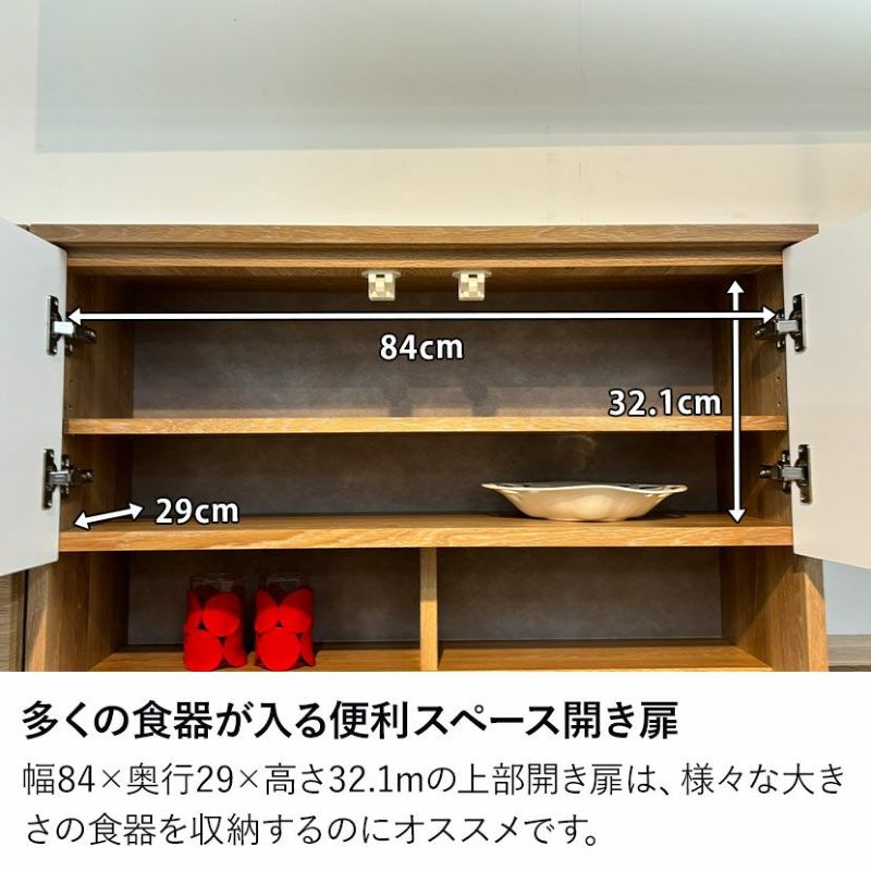 幅84×奥行29×高さ32.1mの上部開き扉は、様々な大きさの食器を収納するのにオススメです。