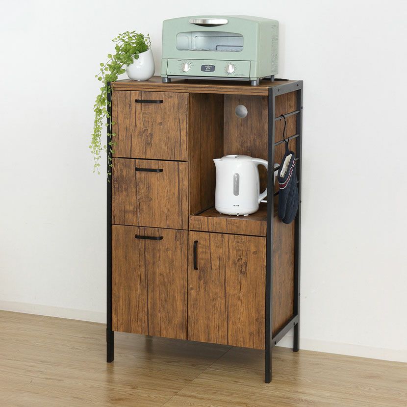 他の画像を見る 幅60cm 木目調 食器棚 アイアンウッド コンセント付き 収納 キッチンラック スリム キッチンボード キッチン収納 レンジ台 おしゃれ ヴィンテージ風 ブラウン ナチュラル 送料無料 送料無料 ¥ 36,900 税込 カートに入れる