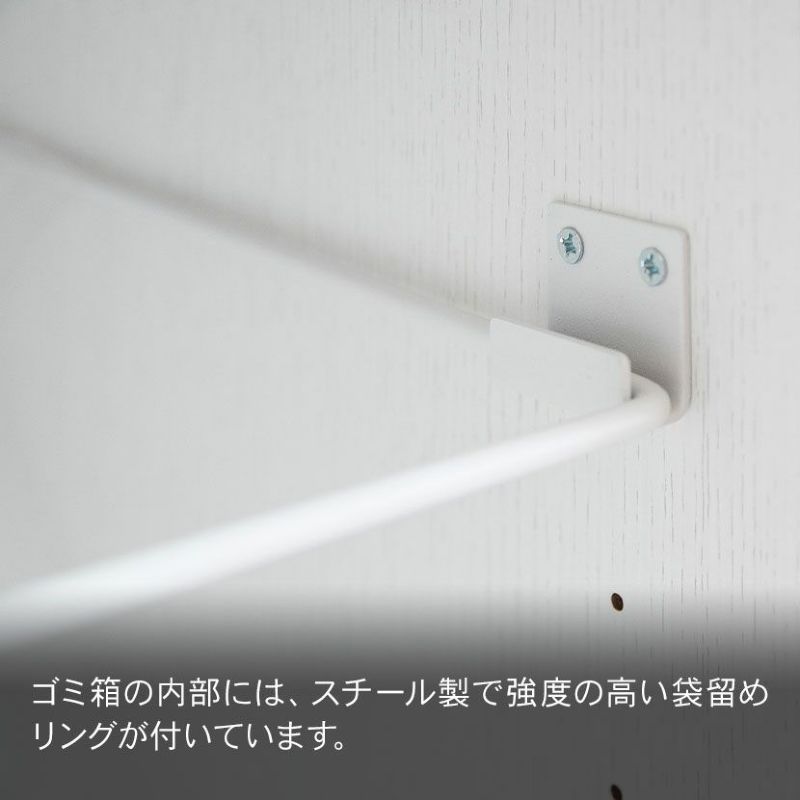 ●ゴミ箱の内部には、スチール製で強度の高い袋留めリングが付いています。