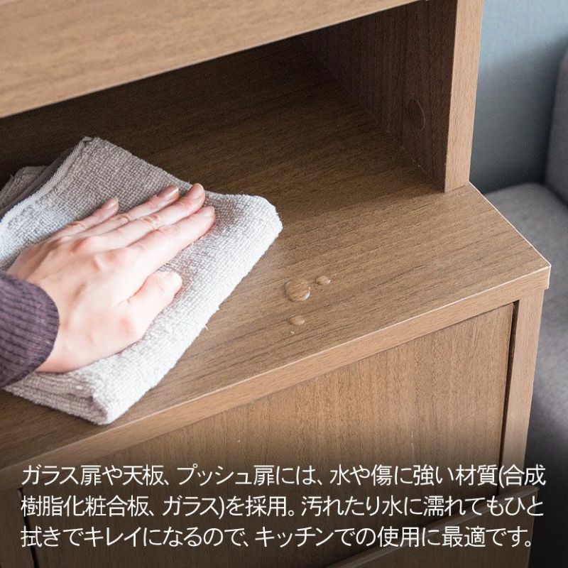 ●上部のラックには透明感のあるガラス扉を採用しており、お気に入りの食器や雑貨などを魅せる収納を楽しめます。