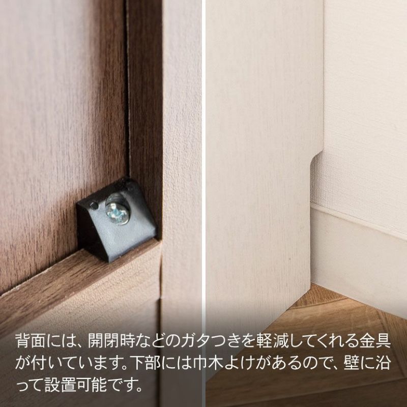 ●背面下部には巾木よけがあるので、壁に沿って設置可能です。