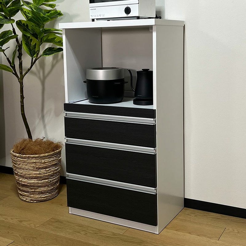 最上段の天板はしっかりとした厚みを持たせた作りになっており、電子レンジやトースターなどのキッチン家電を設置できます。