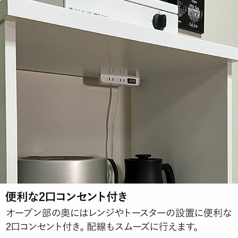 オープン収納スペースの奥には、便利な2口コンセントを完備しています。