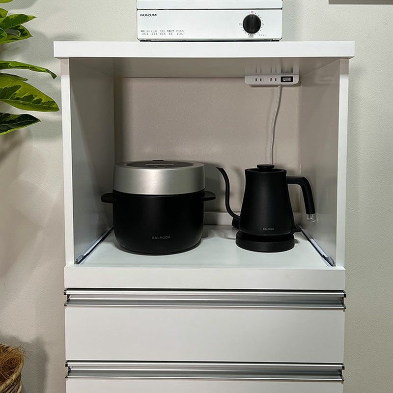 炊飯器やポットなど、使用時に蒸気が出る家電も、手前に引き出すことで熱や湿気を逃がしやすくなり、家具へのダメージを軽減します。