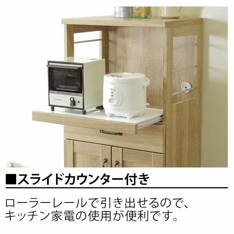 ローラーレールで置き台ごと引き出せるので、キッチン家電を使う時にとても便利です。