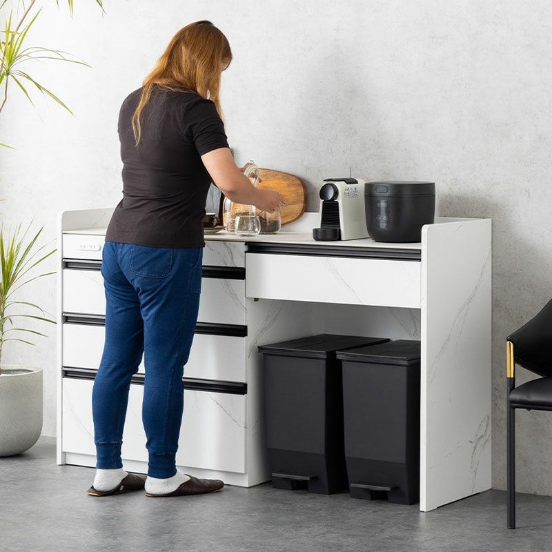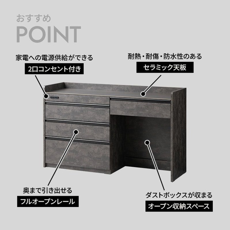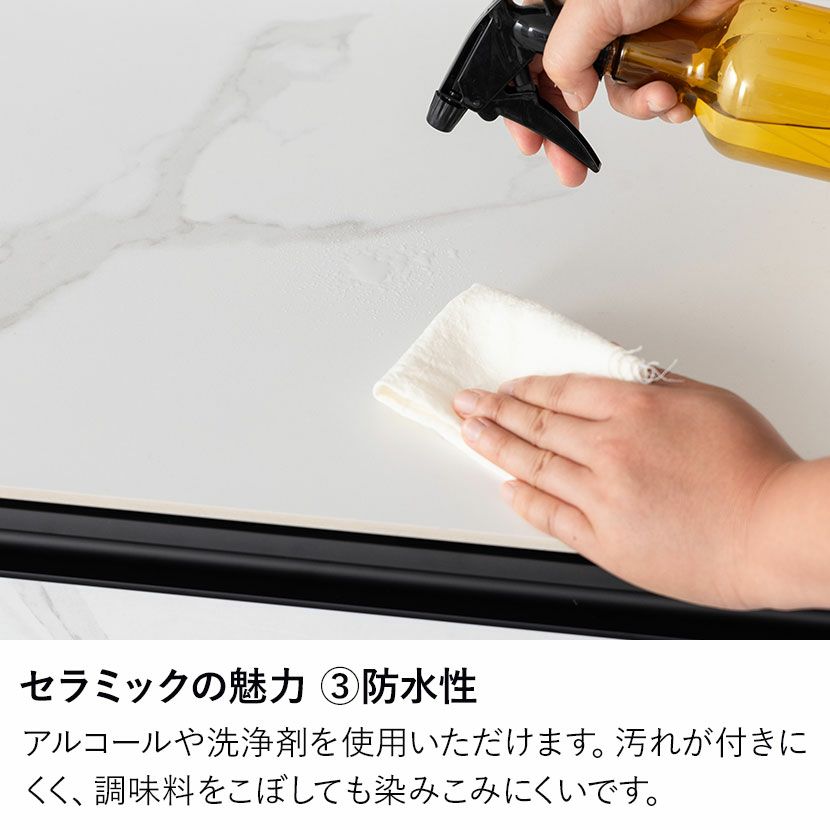 『スタイリッシュなシンプルモダン』をコンセプトとし、細身のラインとセラミックが特徴のトータルコーディネートシリーズです。耐熱性・耐傷性・防水性が高い石目調のセラミックを使用し、デザイン性だけでなく機能性も兼ね備えたおしゃれな空間をつくりだします。