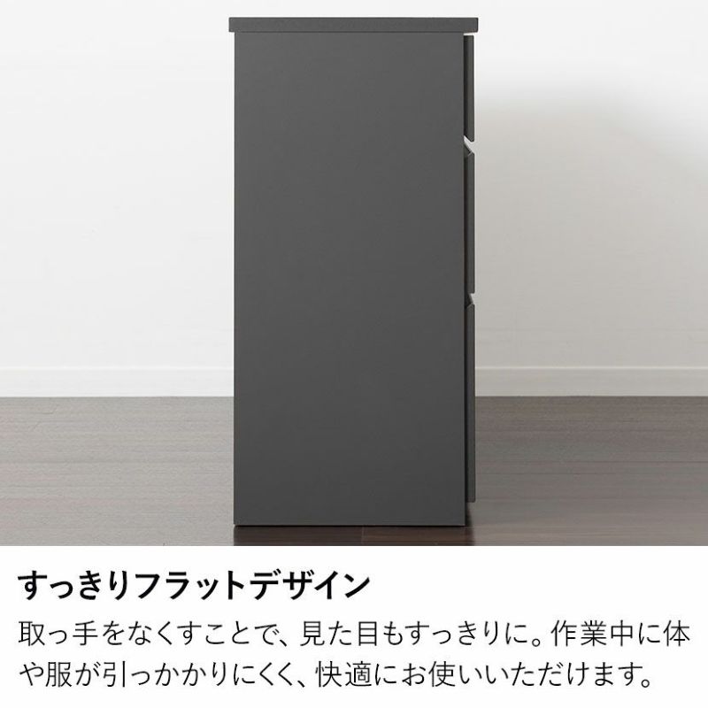 取っ手をなくしたフラットなデザインは、見た目がすっきりとしているだけでなく、作業中に体や衣類が引っかかりにくいという利点も。
