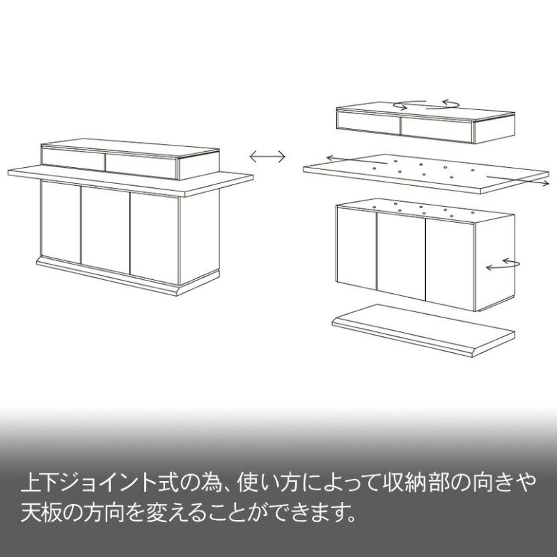 上下ジョイント式の構造なので、組み立て時に収納や天板の向きを選べます。