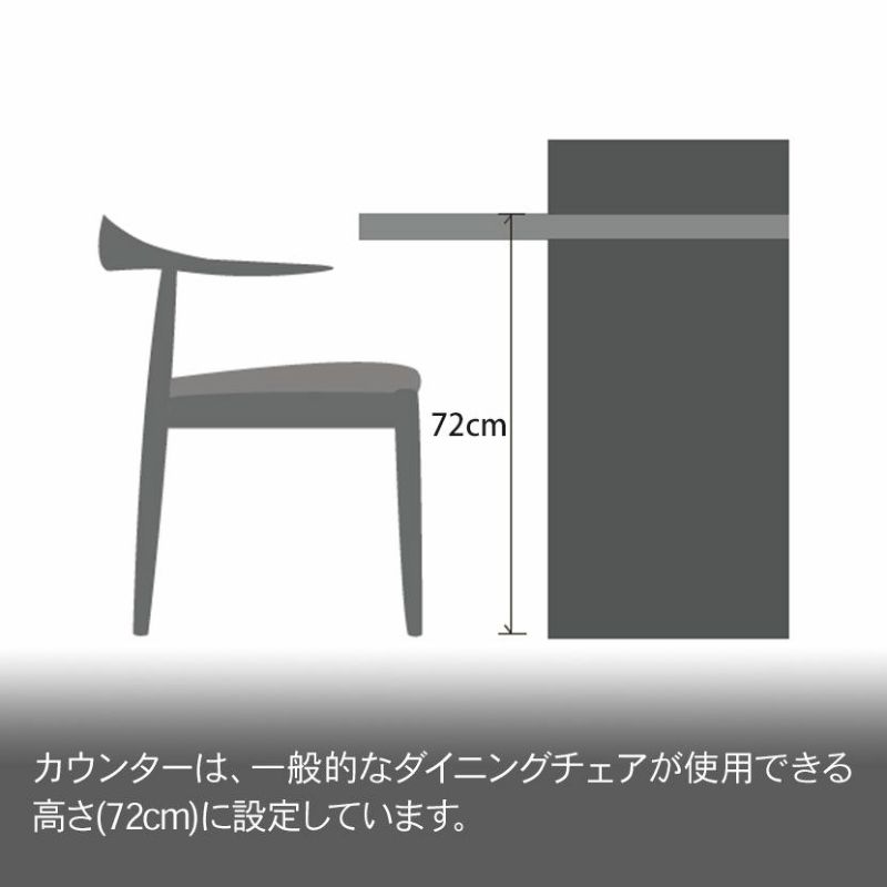カウンターまでの高さは、一般的なダイニングチェアが使用できる72cmに設定されています。