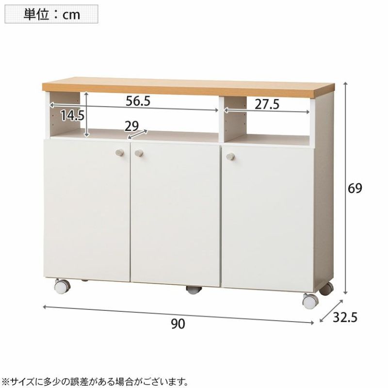 | 備考 | キャスター5個付き(内2個ストッパー付き) 可動棚 / 大小各1枚付き(空間、扉内ともに30mmピッチ・3段階) 扉 / スライドヒンジ使用 |