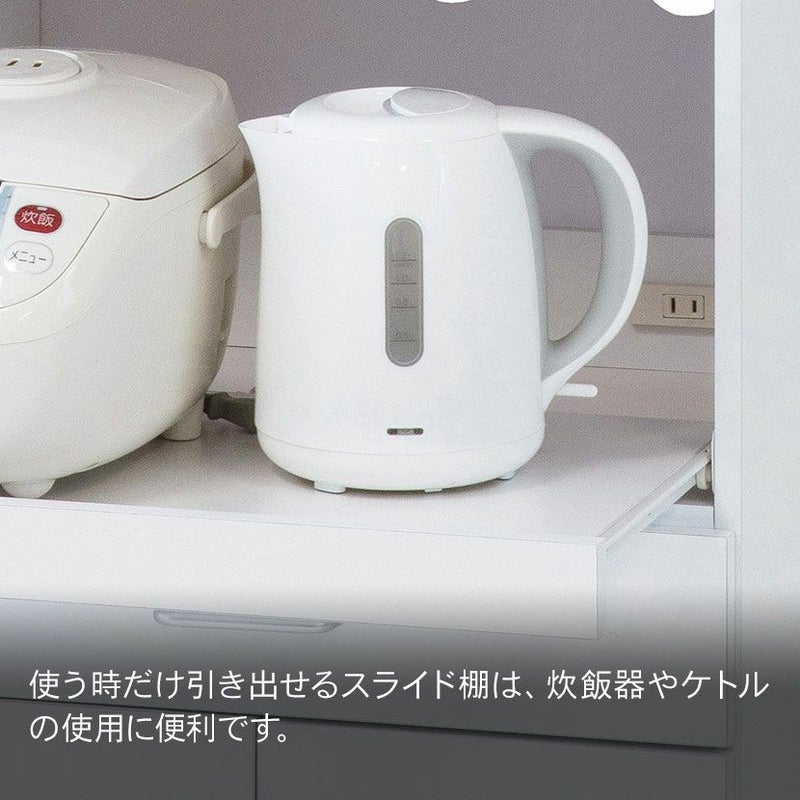 ●使う時だけ引き出せるスライド棚は、炊飯器やケトルの使用に便利です。