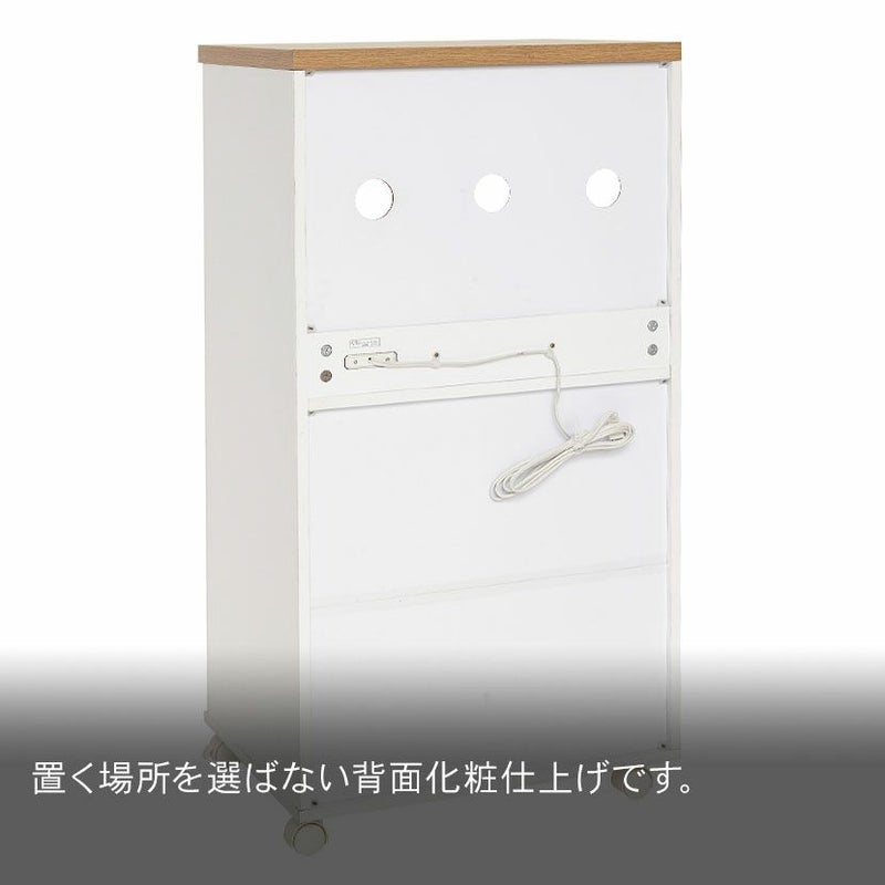 | 備考 | スライド棚付き 可動棚1枚付き(32mmピッチ・3段階) 1500W2口コンセント付き(コード長さ約2000mm) キャスター4個付き(内2個ストッパー付き) コード穴付き(直径約60mm、3ヶ所) 引き出し / レール付き 扉 / スライドヒンジ使用 |