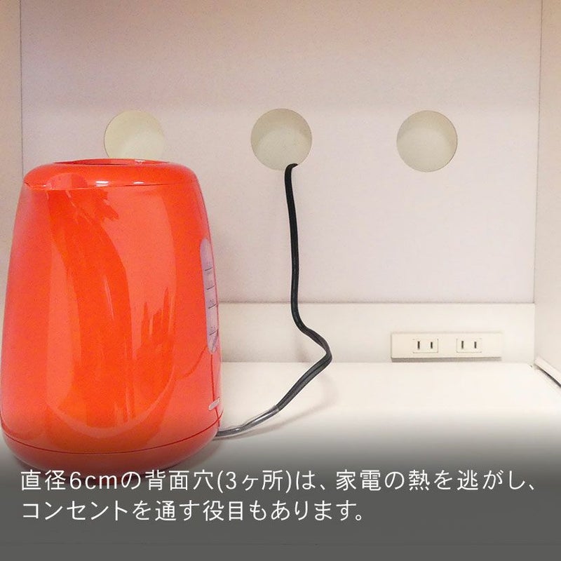 ●直径6cmの背面穴(3ヶ所)は、家電の熱を逃がし、コンセントを通す役目もあります。