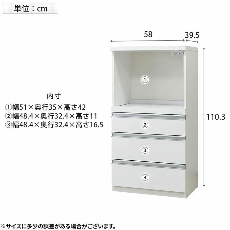 幅58cmというスリムな設計で、限られたキッチンスペースやワンルームでも圧迫感なく設置が可能です。