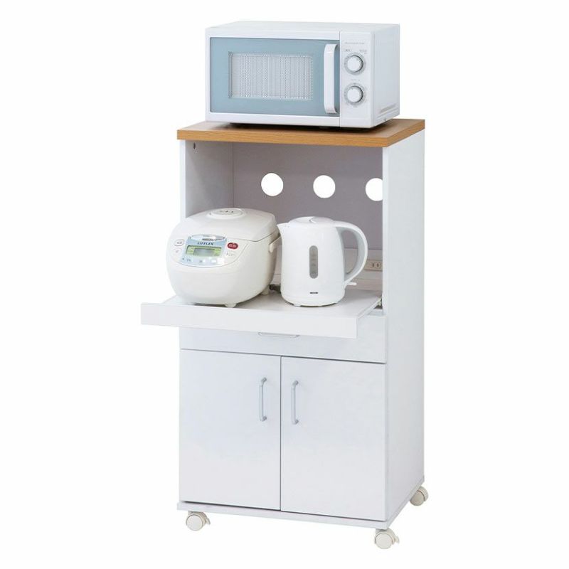 ●使う時だけ引き出せるスライド棚は、炊飯器やケトルの使用に便利です。