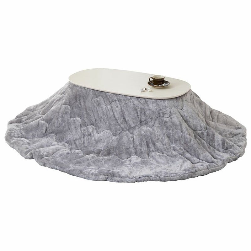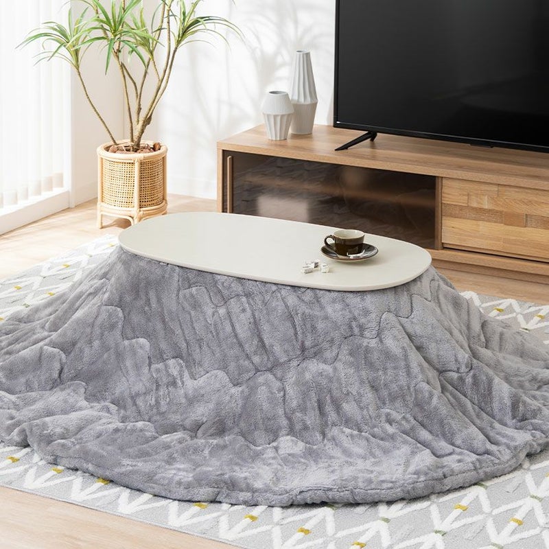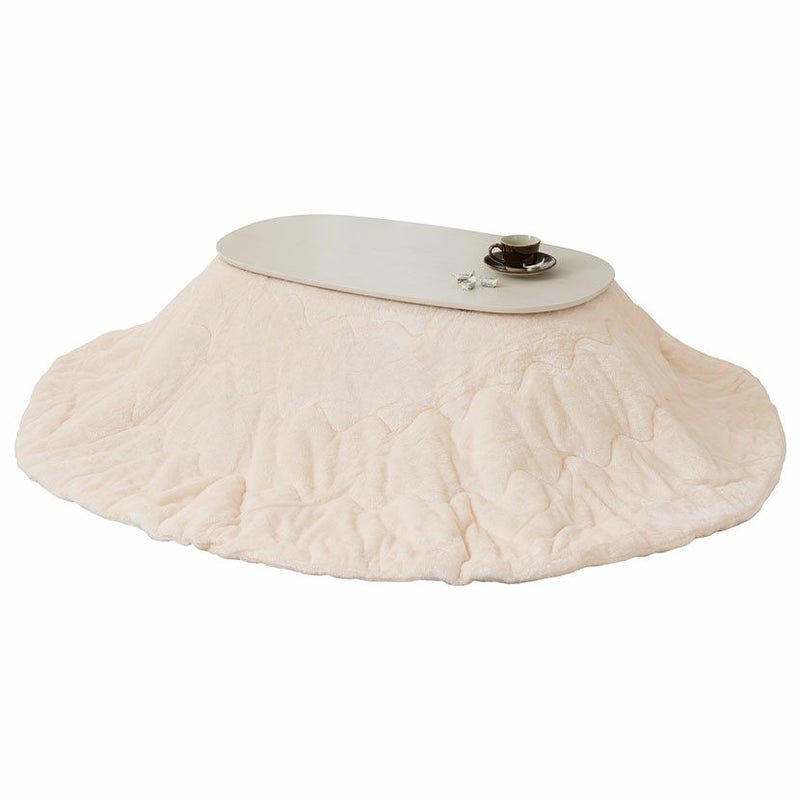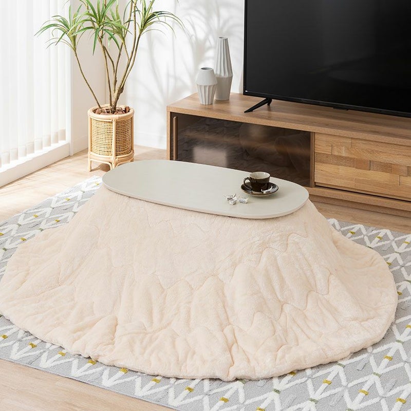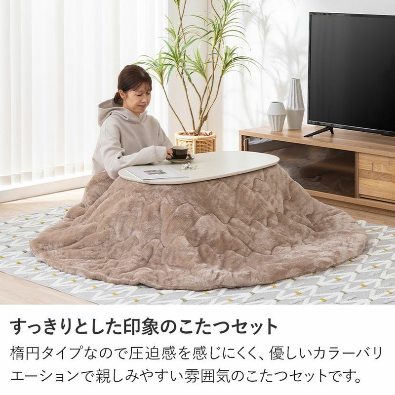 家具調 こたつセット 楕円 白 2点 石英管ヒーター 折りたたみ こたつ 木目 ローテーブル リビングこたつ おしゃれ 可愛い (幅90cm こたつテーブル×1 こたつ布団×1)