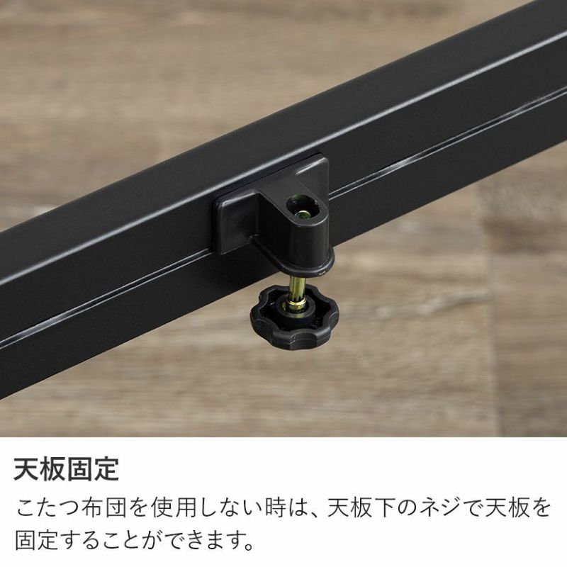<こたつテーブル>●こたつを囲って家族団らん家族や友人と大人数でこたつを囲めば会話も弾み、身体も心もぽかぽかに。●ヴィンテージな雰囲気を演出天板のデザインが特徴的なこたつテーブル。重厚感のあるデザインがヴィンテージな雰囲気を演出します。●オフシーズンはテーブルとしてインテリア性の高いデザインなので、春夏はセンターテーブルとしてオールシーズンお使いいただけます。●仕上げはUV塗装天板にはキズがつきにくく、お手入れも簡単なUV塗装仕上げとなっています。●コード収納オフシーズン時のコード類は天板裏に収納しておくことができます。●コードフックコードの長さ調節や垂れ下がりの防止に役立ちます。●天板固定こたつを布団を使用しない時は、天板下のネジで天板を固定することができます。●継ぎ脚で高さ調節可能テーブル脚の高さを変えられる約5cmの継ぎ脚付き。お好みで高さを簡単に調節できます。