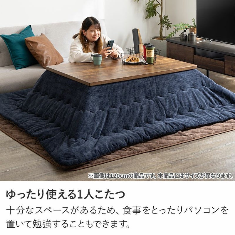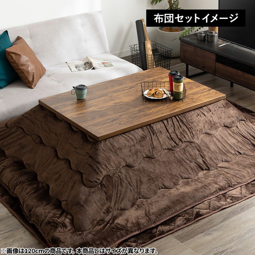 <こたつテーブル>●こたつを囲って家族団らん家族や友人と大人数でこたつを囲めば会話も弾み、身体も心もぽかぽかに。●ヴィンテージな雰囲気を演出天板のデザインが特徴的なこたつテーブル。重厚感のあるデザインがヴィンテージな雰囲気を演出します。●オフシーズンはテーブルとしてインテリア性の高いデザインなので、春夏はセンターテーブルとしてオールシーズンお使いいただけます。●仕上げはUV塗装天板にはキズがつきにくく、お手入れも簡単なUV塗装仕上げとなっています。●コード収納オフシーズン時のコード類は天板裏に収納しておくことができます。●コードフックコードの長さ調節や垂れ下がりの防止に役立ちます。●天板固定こたつを布団を使用しない時は、天板下のネジで天板を固定することができます。●継ぎ脚で高さ調節可能テーブル脚の高さを変えられる約5cmの継ぎ脚付き。お好みで高さを簡単に調節できます。