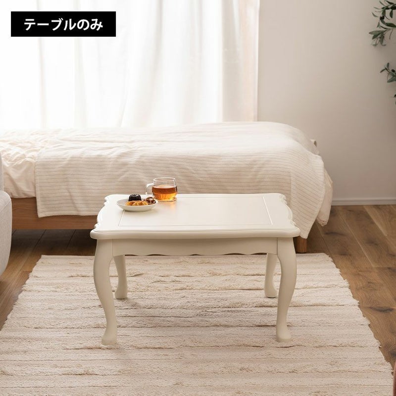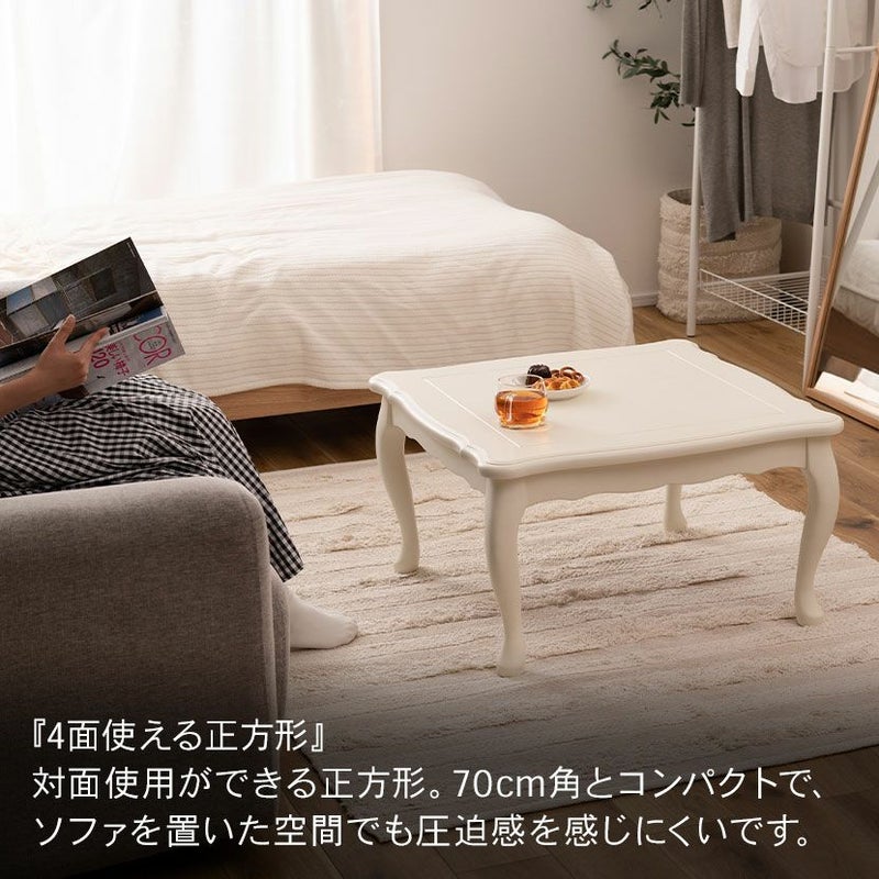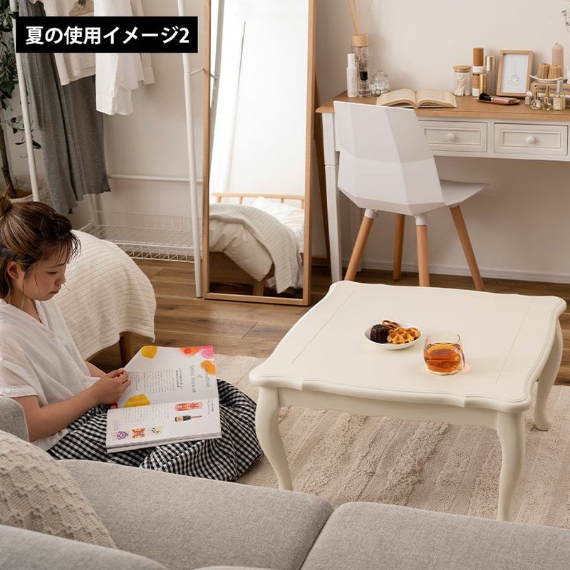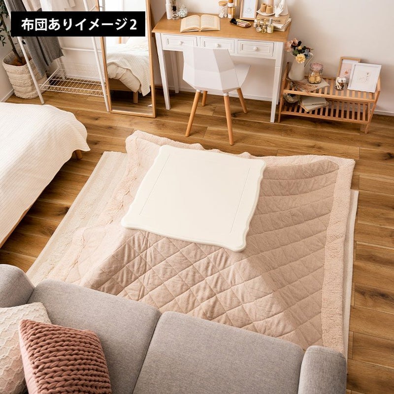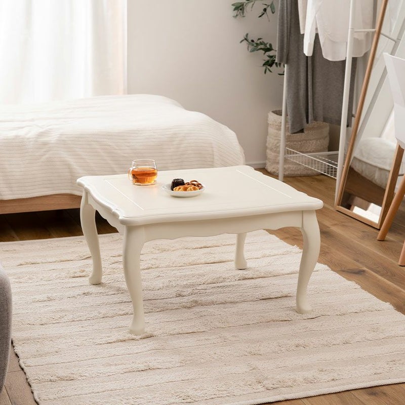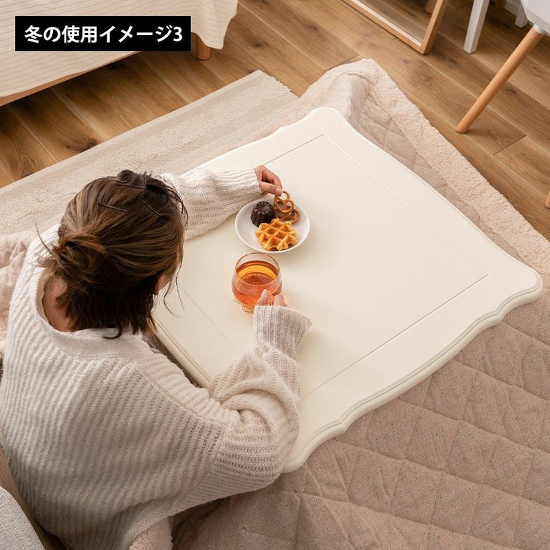 ●曲線の装飾が美しい天板なので、こたつ布団を掛けてもおしゃれでガーリーな雰囲気を演出してくれます。