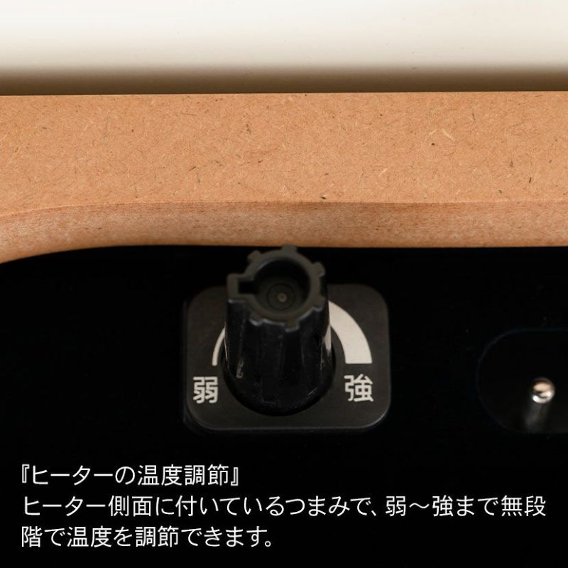 ●ヒーター側面に付いているつまみで、弱~強まで無段階で温度を調節できます。